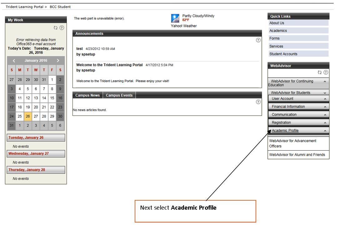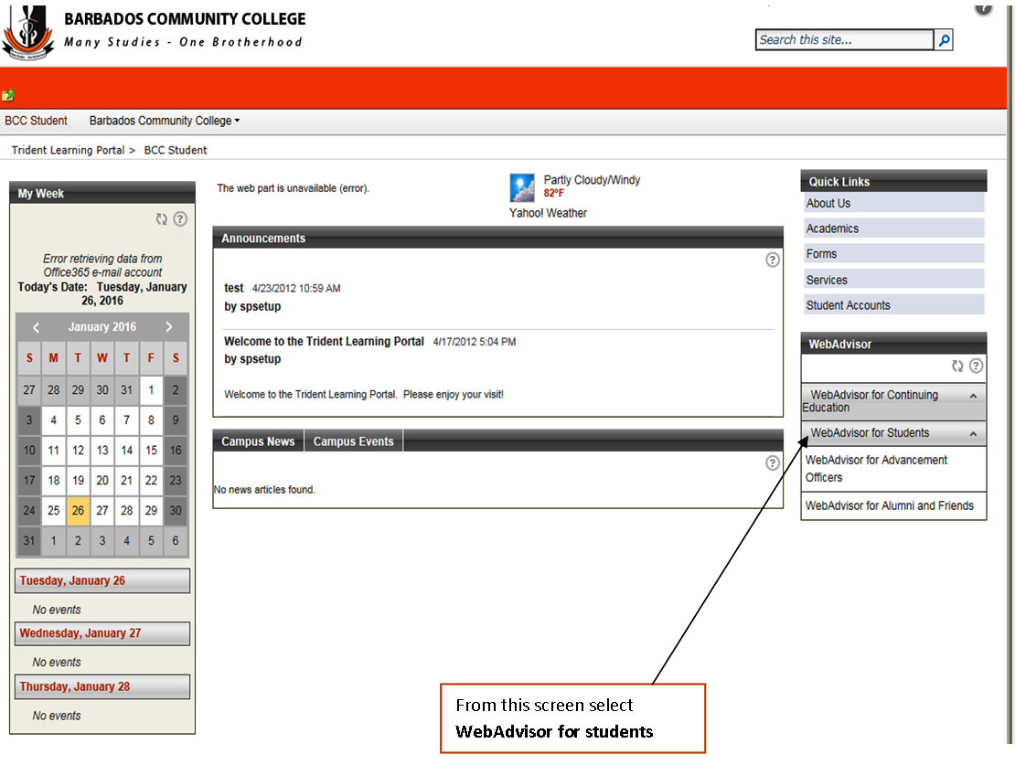 - Step 2. Go to the right side of the page under the heading WebAdvisor and select Webadvisor for Students.