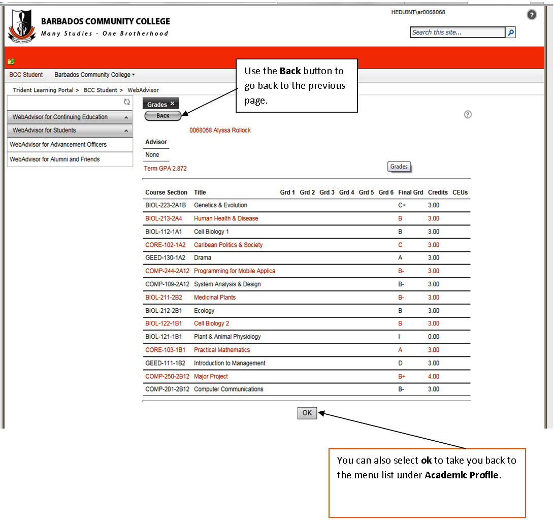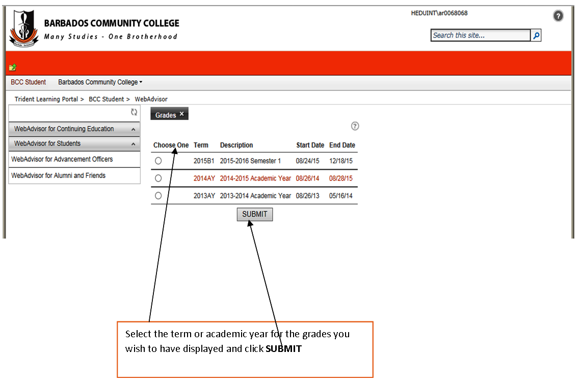 Please click on the link https://tridentlearning.edu.bb to access your grades through the Trident Learning portal.