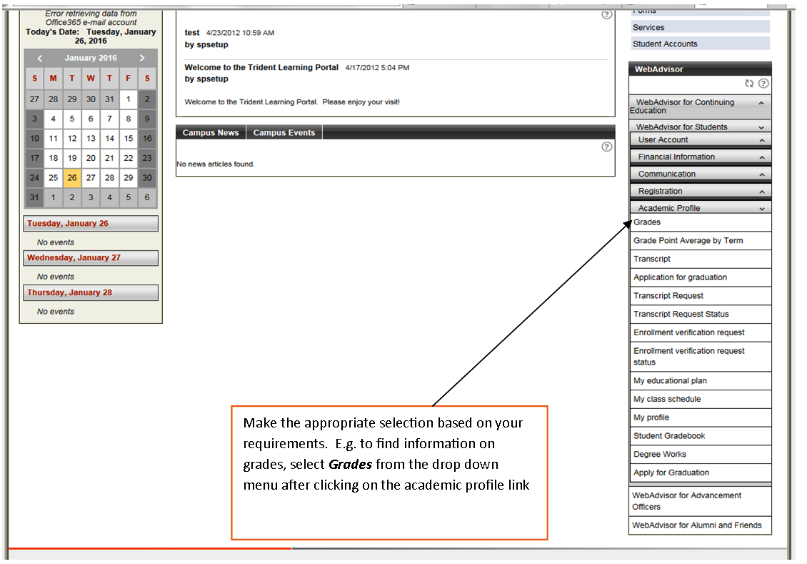 Follow the steps below to login to Trident Learning where you can access information on grades, view your Grade Point Average (GPA) etc.