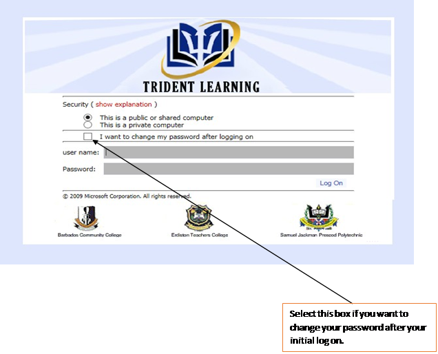 - Step 2. If you wish to change your password after initial logon select the “I want to change my password after logging on” box.